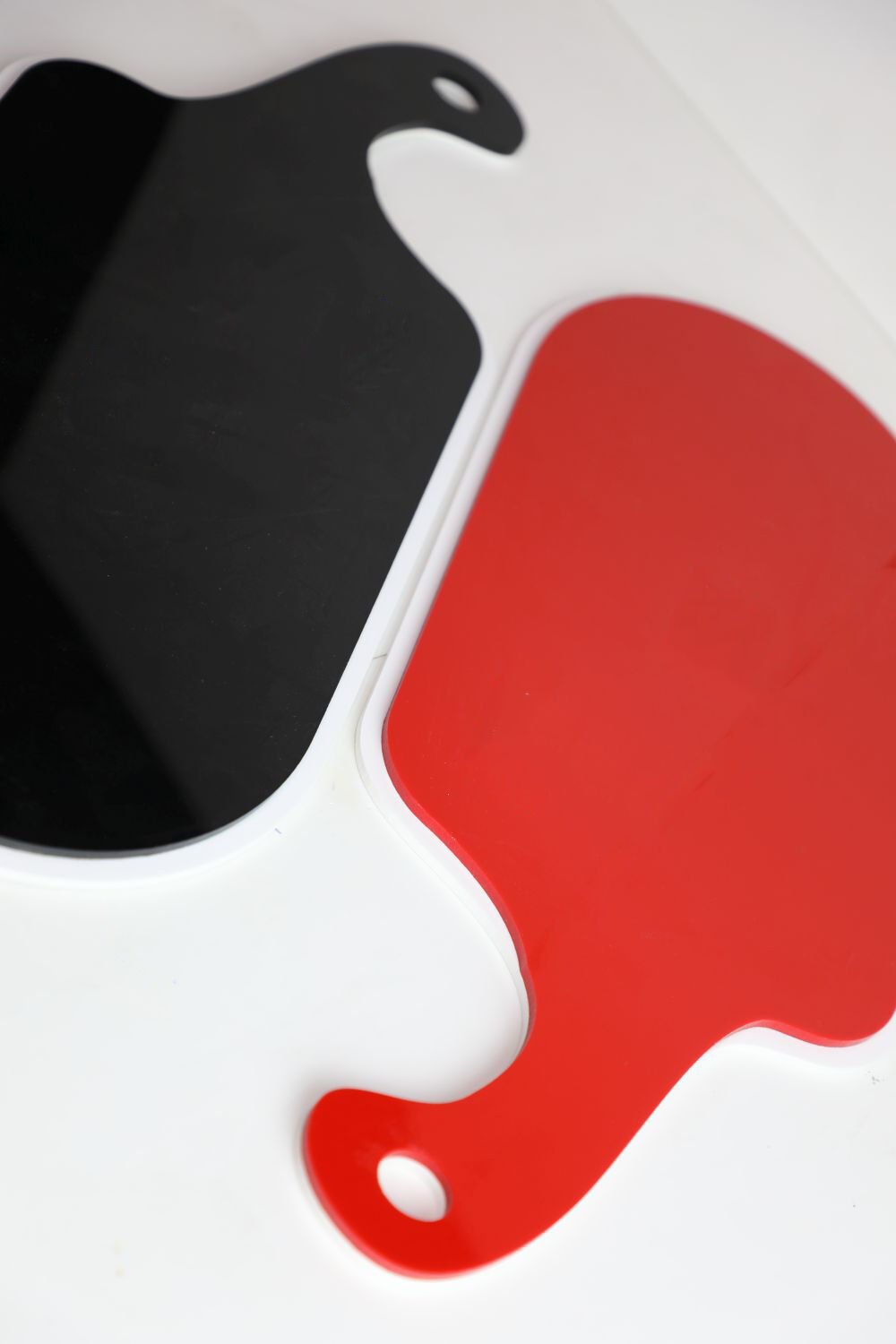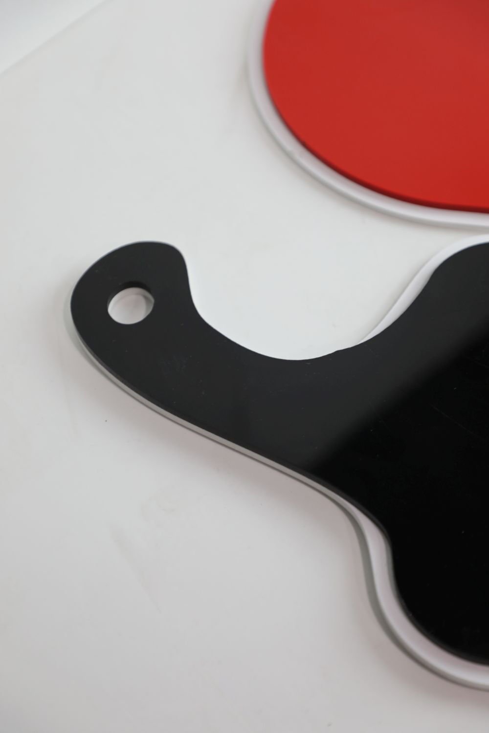 Tek taraflı kullanım için tasarlanmış olan bu özel sunum tepsisi, üst yüzeyinde sade ama çarpıcı bir siyah & beyaz renk kombinasyonu ile sunulur. Her iki yanda yer alan ergonomik kulplar, taşıma kolaylığı sağlar.