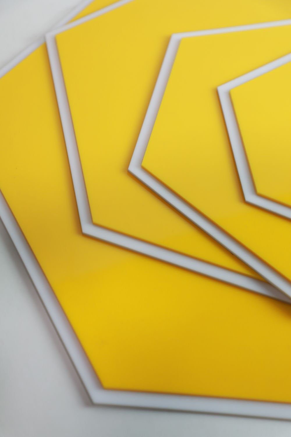 40x45 cm Altıgen Akrilik Sunum Tepsisi | Sarı & Beyaz | Çift Katlı – Masa Sunumu, Açık Büfe ve Standlar İçin Özel Tasarım