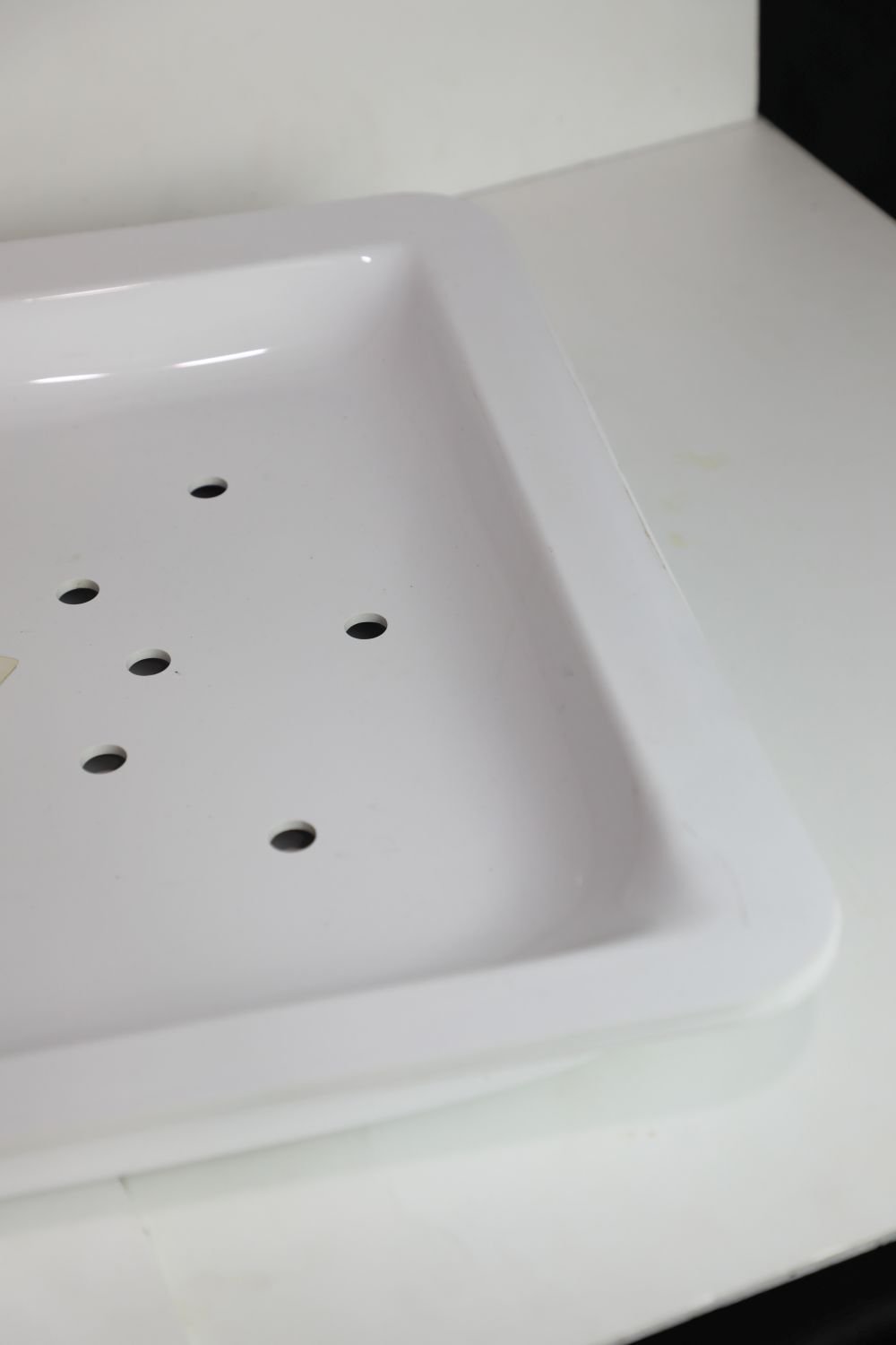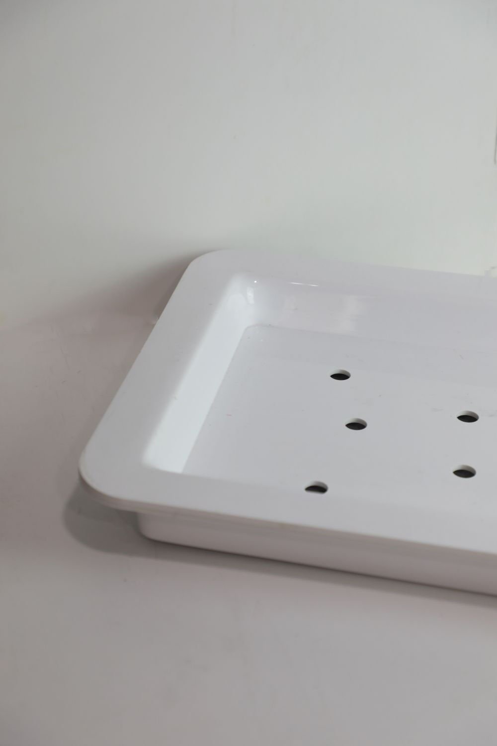 36x64 cm Çift Katlı ABS Karpuz Tepsisi | Yükseklik: 6-9 cm | 12 Su Tahliye Deliği | Beyaz – Beyaz | Tek Taraflı Kullanım | Hijyenik ve Geniş Sunum Alanı