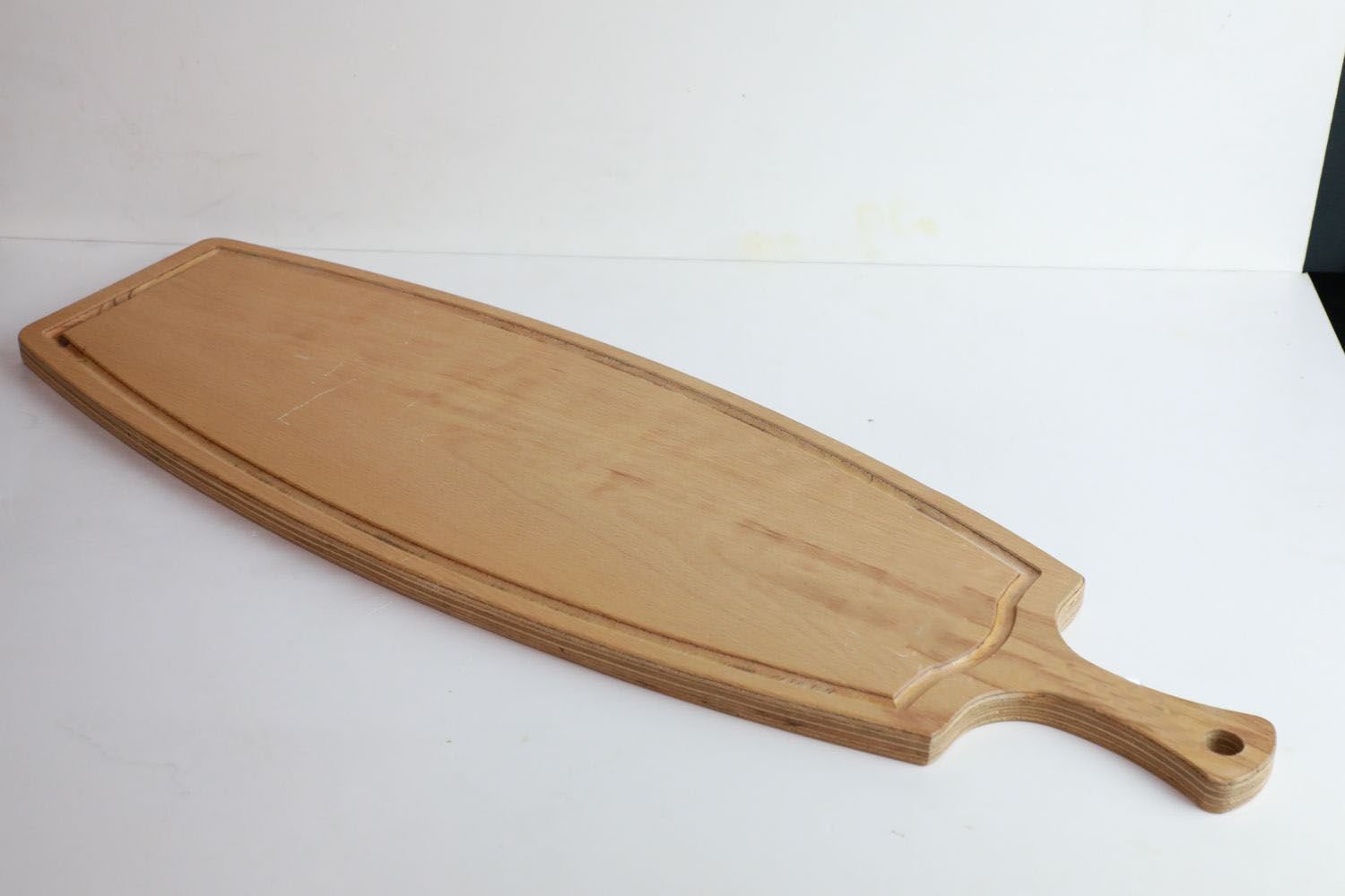 Teak Yağlı Kayın Kontra Kulplu Kanallı Çok Amaçlı Steak / Pide Sunum Tahtası – 61x20 cm, 18 mm