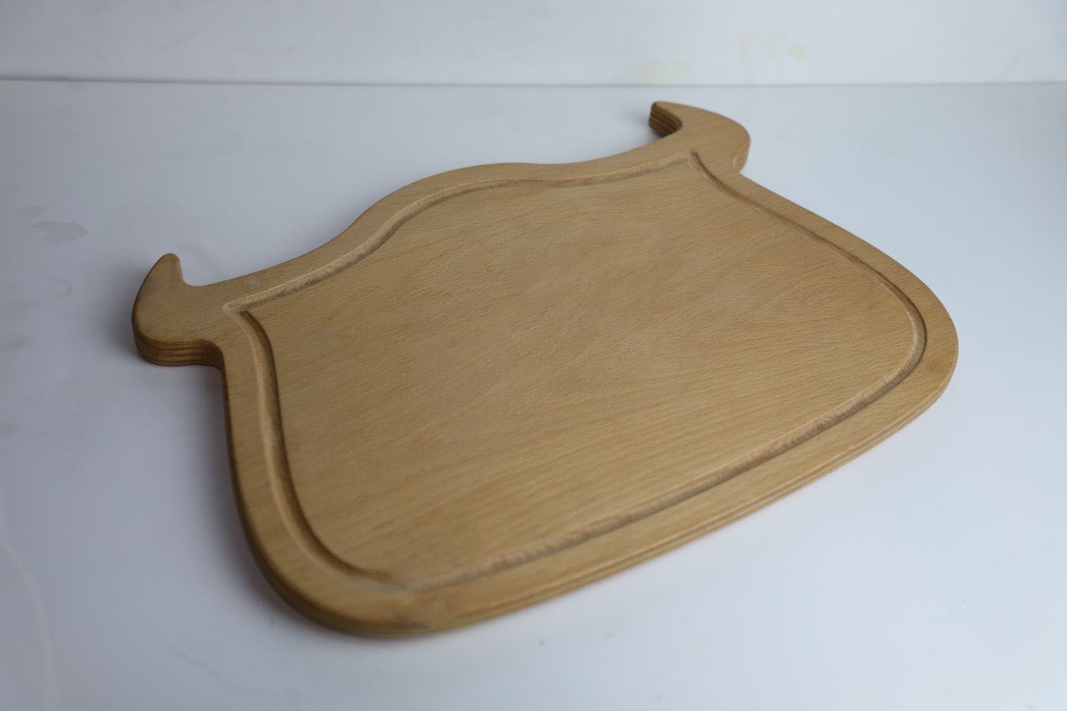 Öküz Başı Boynuz Desenli Steak Sunum Tahtası – 27x37 cm | Teak Yağlı Özel Seri