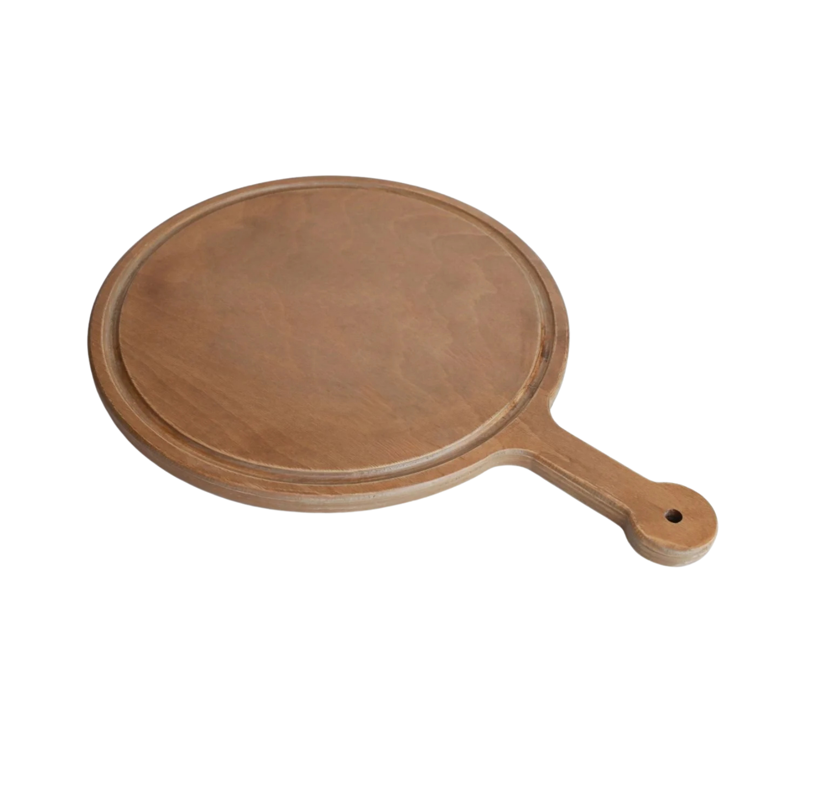 32 cm çapındaki kulplu yuvarlak pizza sunum tahtası, şık tasarımı ve dayanıklı yapısıyla hem ev kullanıcıları hem de profesyonel mutfaklar için mükemmel bir tercihtir. 18 mm kalınlığındaki sağlam kayın kontraplak malzemeden üretilmiştir. Ergonomik kulp detayı sayesinde taşıma ve servis kolaylığı sağlar.