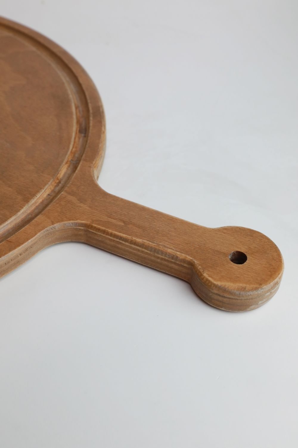 Kulplu Yuvarlak Pizza Sunum Tahtası – D: 32 cm (Kulp Dahil: 44 cm) | 18 mm Kayın Kontra