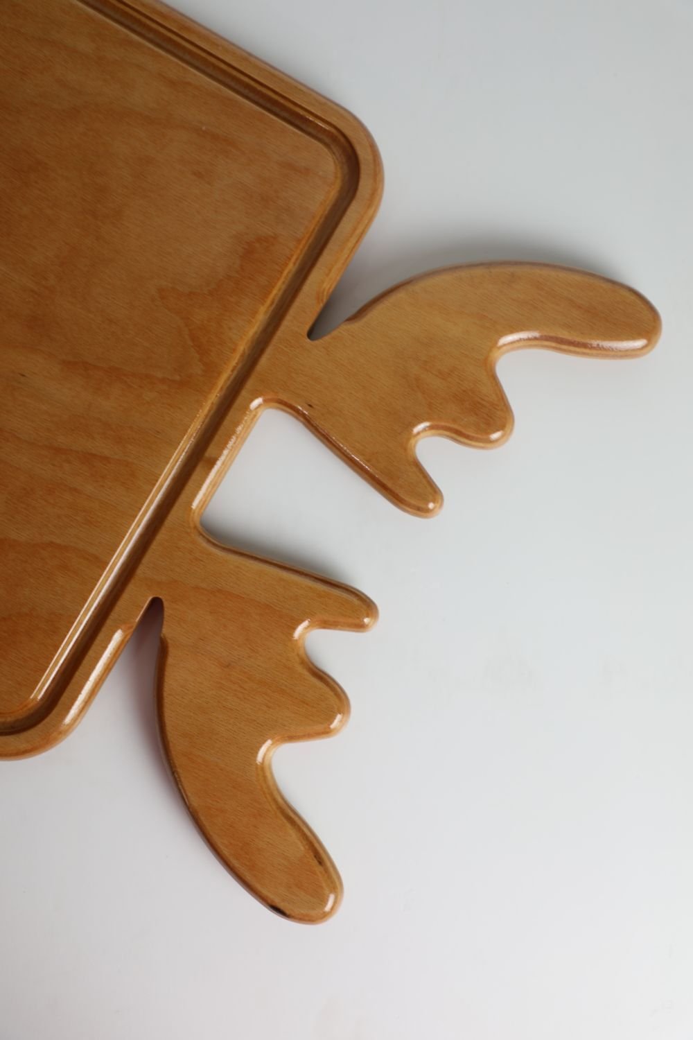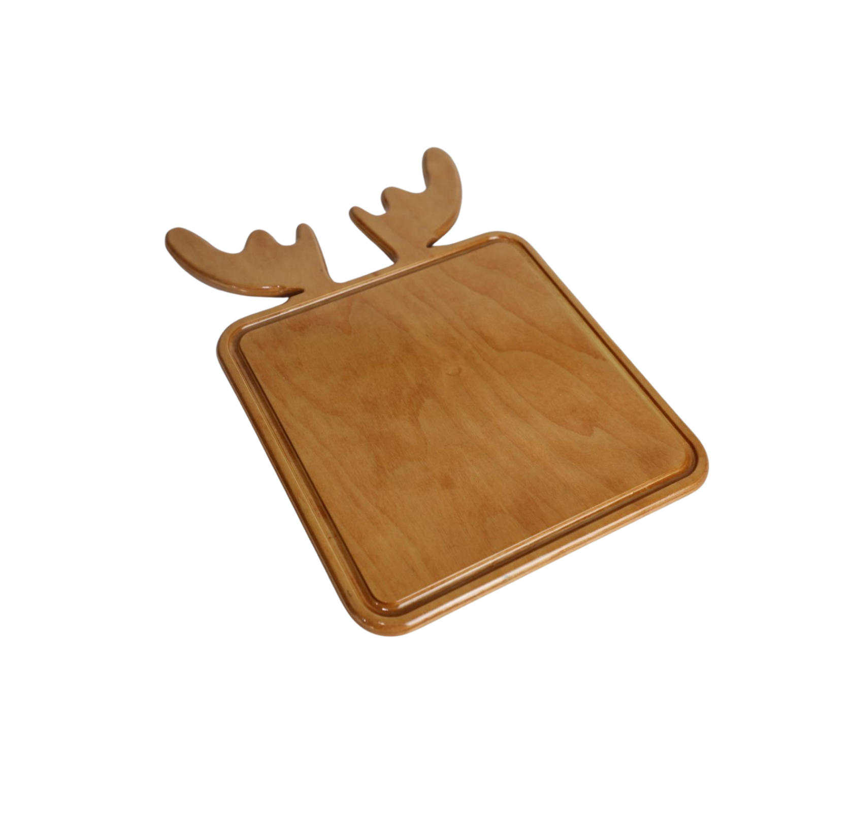Kayın ağacının sağlam yapısı ile uzun ömürlü kullanım sunan bu özel tasarım sunum tahtası, rustik ve modern çizgileri bir araya getiriyor. Geyik boynuzlu motif, ürüne otantik bir dokunuş katarken kare formuyla servislerinize düzen ve şıklık sağlar.