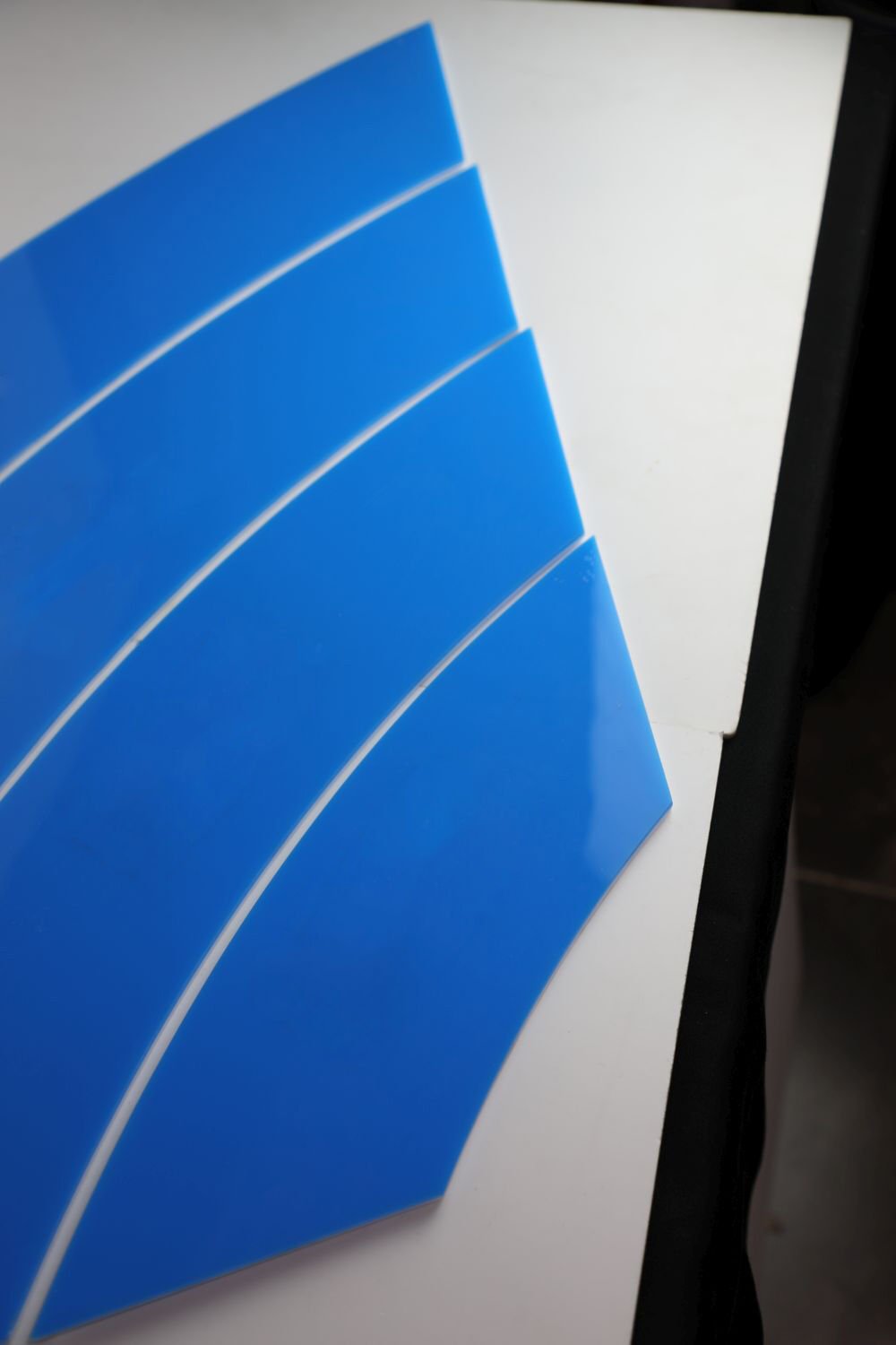 12x40 cm Yay Formlu Akrilik Sunum Tepsisi | Beyaz & Mavi | Çift Katlı | Çift Taraflı Kullanım | Masa Sunumu / Açık Büfe / Stand Sunumu
