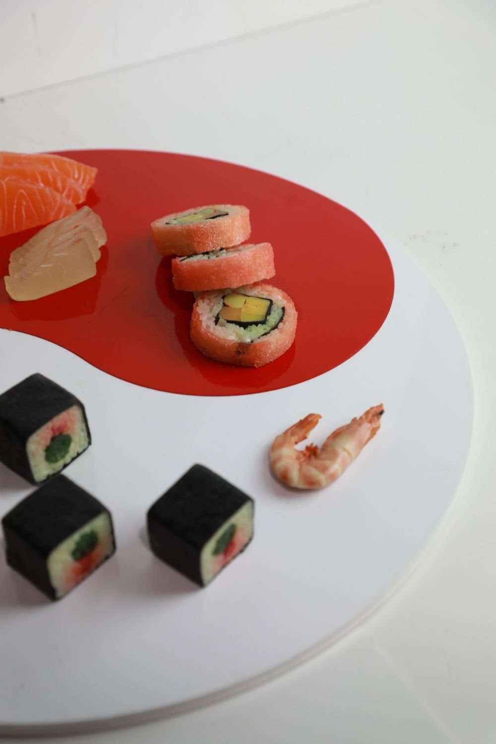 Yin Yang Tasarımlı Kırmızı Beyaz Masa Sunum Tepsisi (ABS)