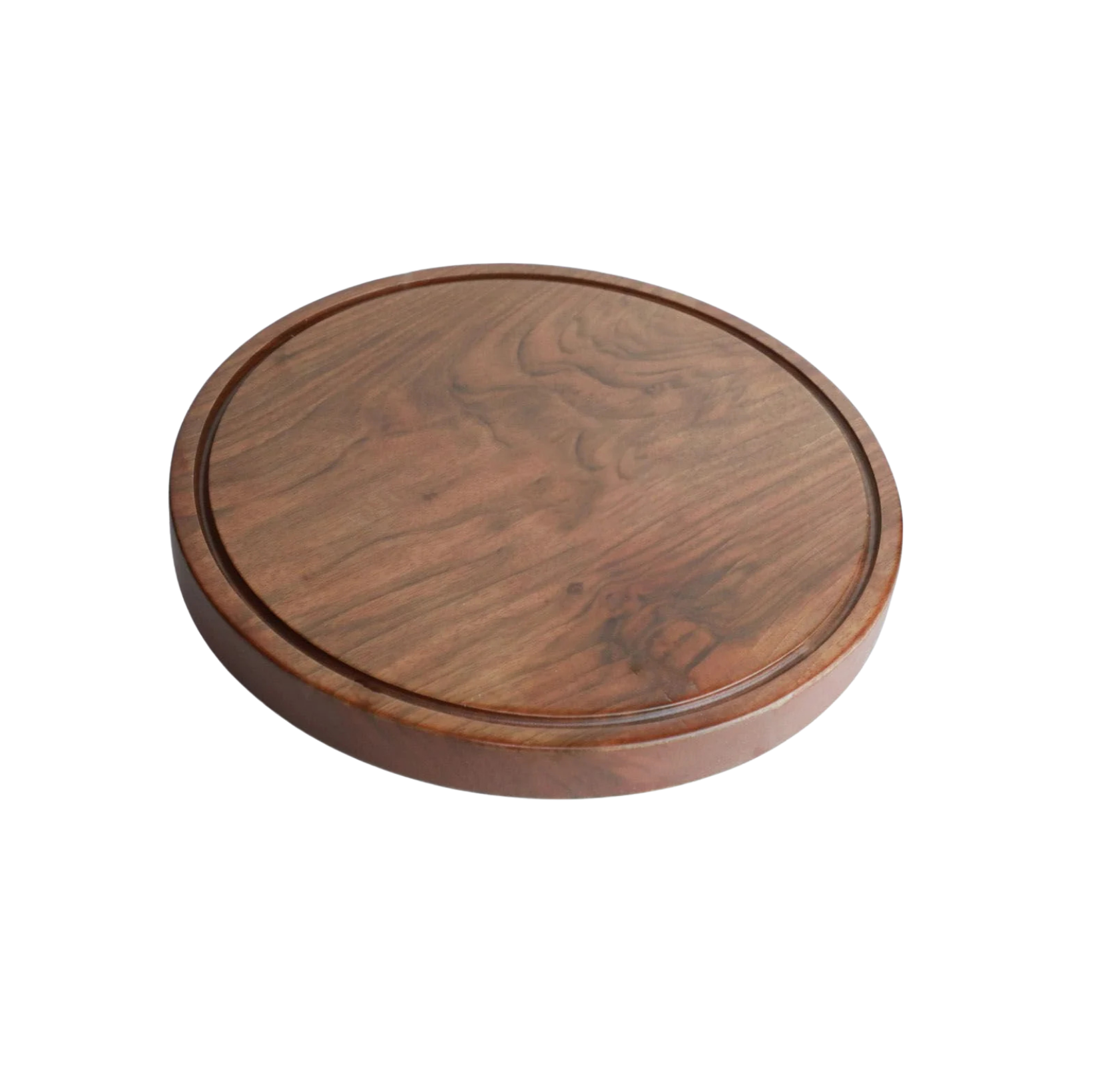 Yuvarlak Ceviz Ağacı Steak Sunum ve Kesme Tahtası – Ø30 cm | 30 mm Kalınlık