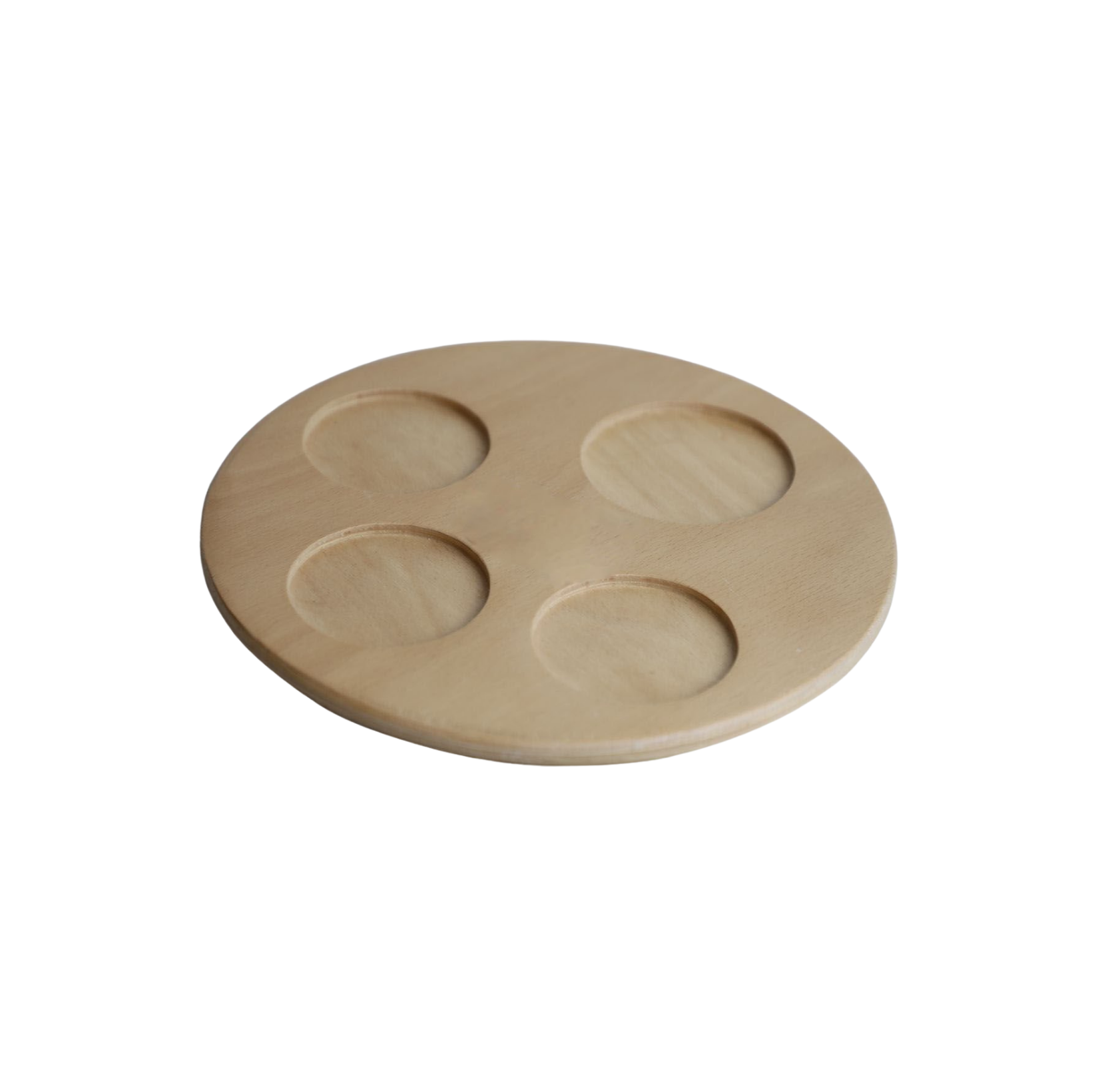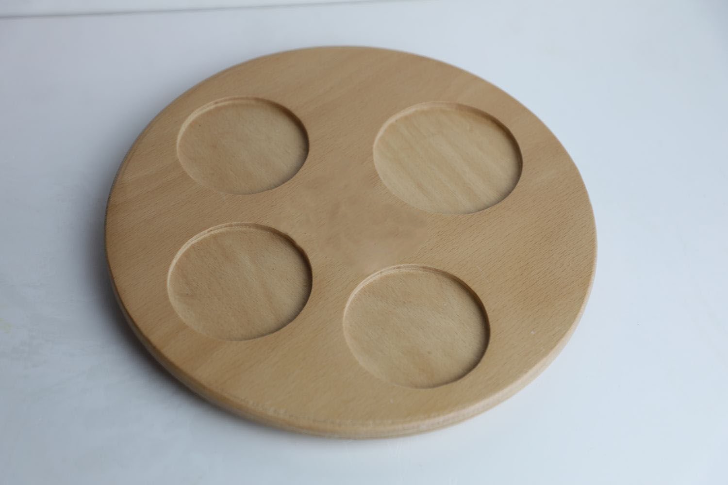 Yuvarlak Viski Sunum Tahtası – Ø25 cm | 4 Gözlü | Teak Yağlı Özel Seri